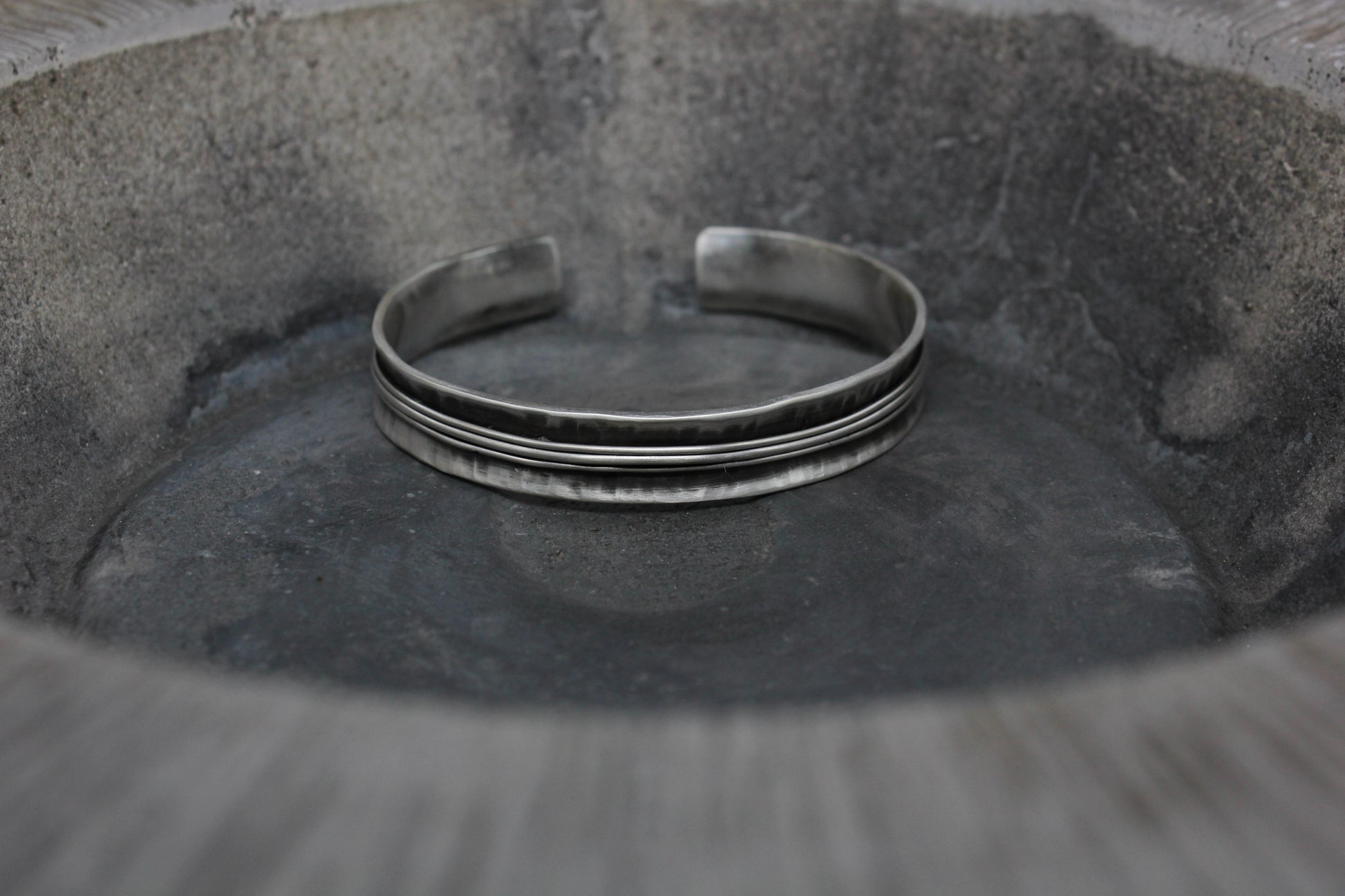 The Lines bracelet features a unique hammered design crafted from sterling silver wires. Its delicate texture offers a distinctive, handcrafted look. Unisex design.